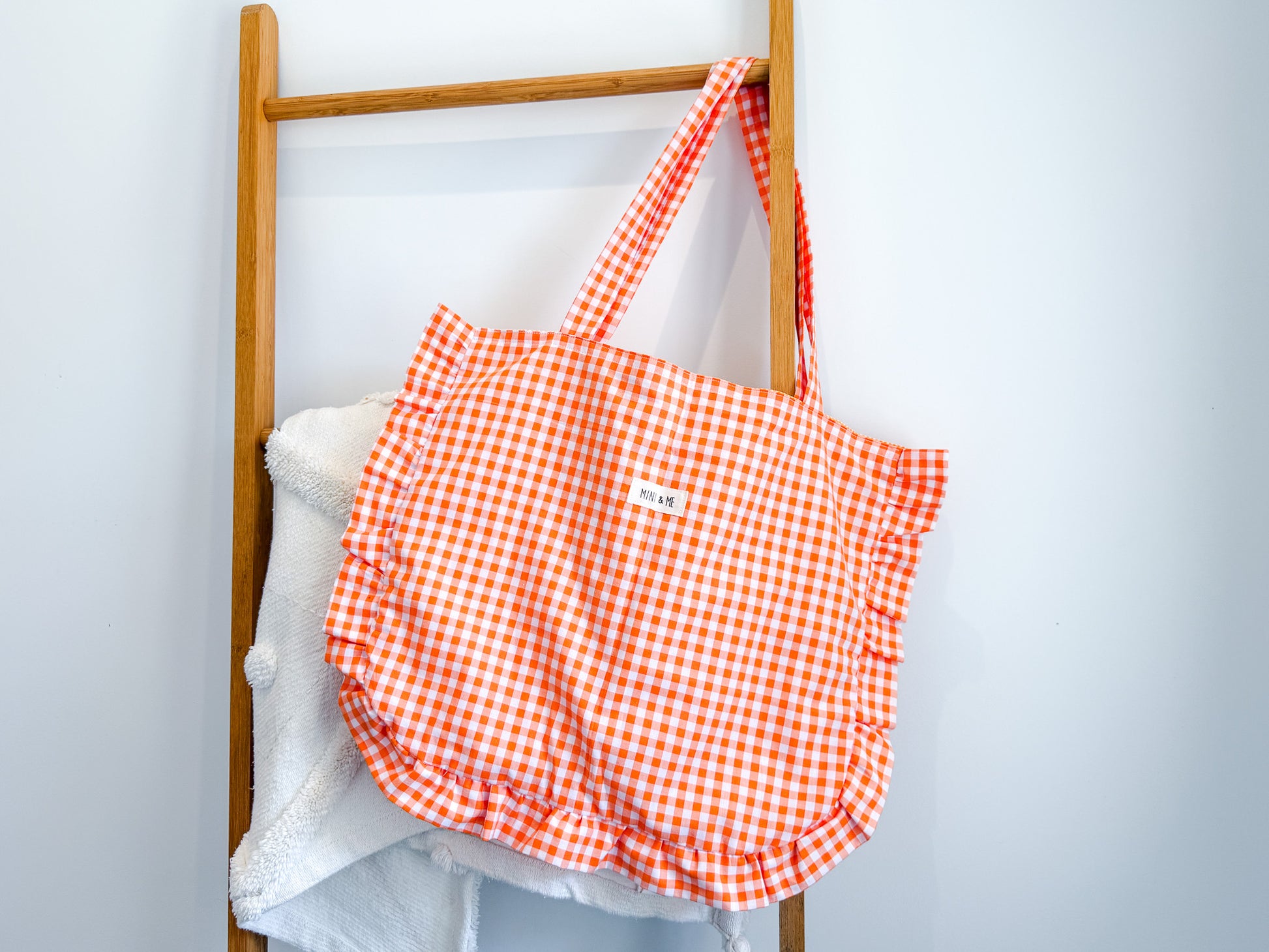 Large Ruffle Tote Bag - Orange Gingham