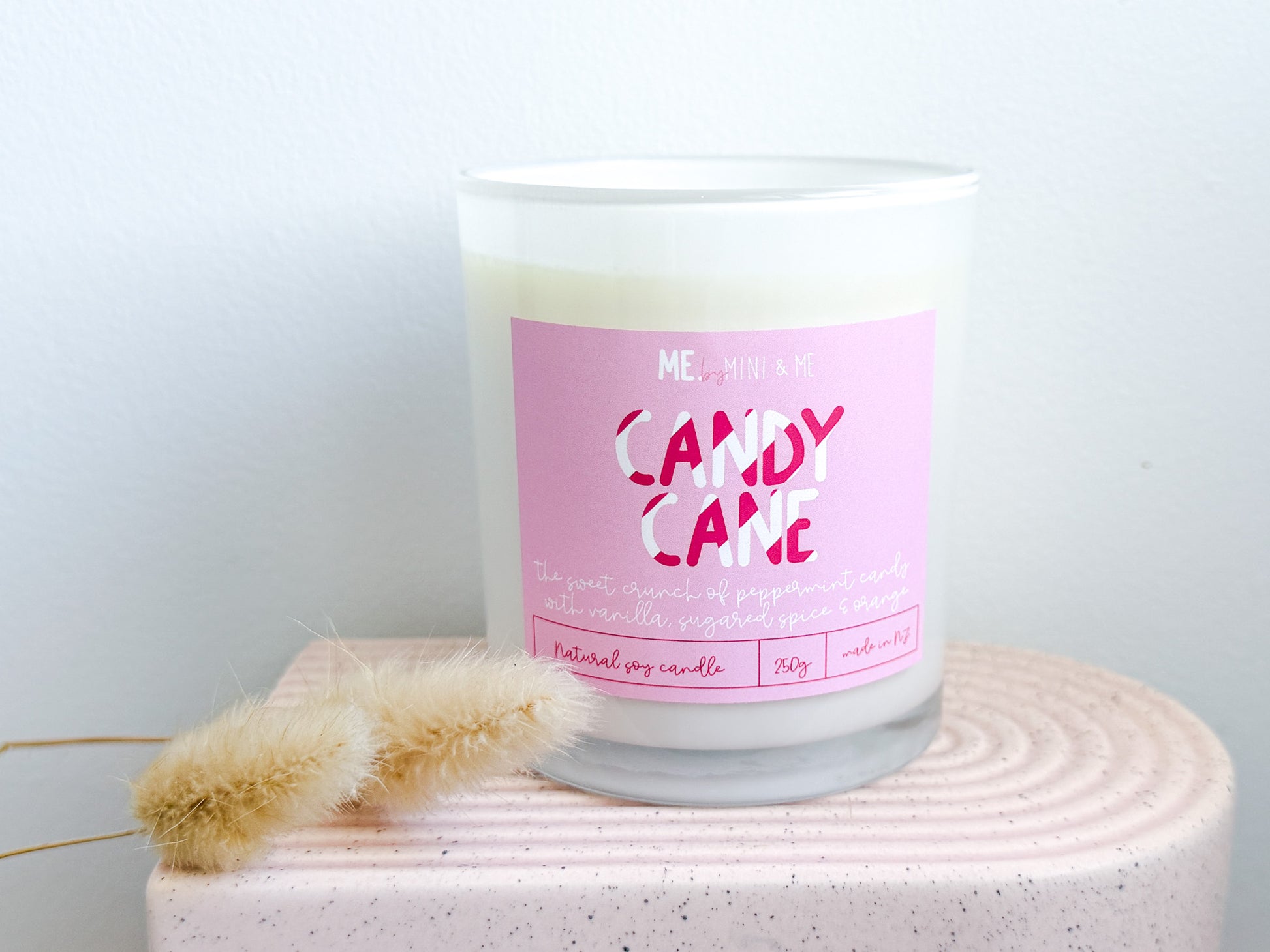 Fresh, minty and delightfully festive, our Candy Cane candle delivers an invigorating burst of sweet peppermint with a cosy twist. Bright eucalyptus, zesty orange and cool peppermint open the fragrance with a refreshing snap, while hints of cherry and spearmint add playful sweetness. A smooth base of vanilla bean, osmanthus and soft white musk rounds out the blend, creating a creamy, comforting finish — like unwrapping a candy cane by the Christmas tree. Hand-poured in small batches in Auckland, New Zealand, using 100% natural soy wax and a clean-burning cotton wick for a smooth, even burn.
